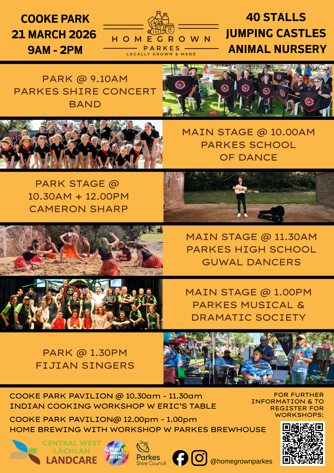 For further information, go to our Homegrown Parkes Facebook or Instagram page.