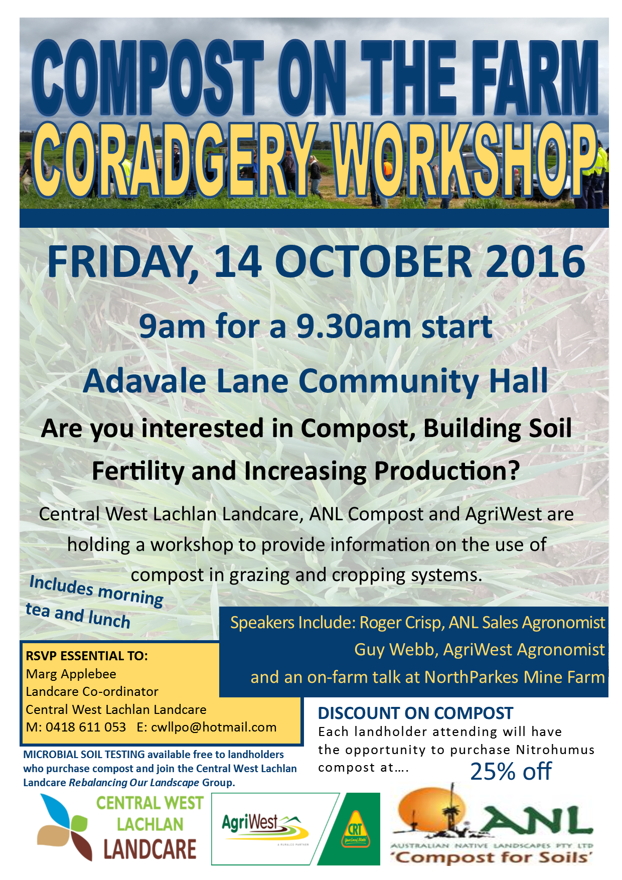 This workshop is provided free to the community with the support of ANL (Australian Native Landscapes) and Agriwest and will be looking at trials undertaken by the NorthParkes Mine using ANL Compost.