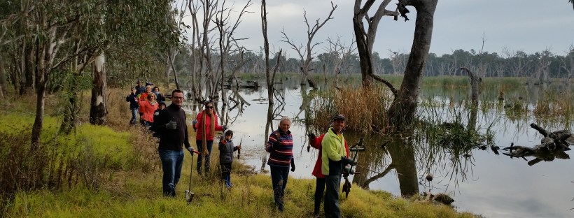 We were fortunate to have a good turnout for our first Forbes Landcare Bushrangers planting event on Saturday morning at Gum Swamp. It was great to have a range of ages, with 17 people, giving up their time to contribute to the Painted Snipe Project and working to improve the habitat at Gum Swamp.