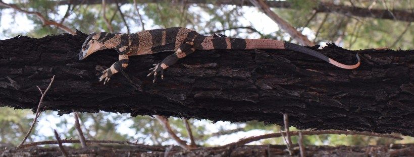 Looking fresh after the rain was a Lace Monitor, Varanus varius (pictured), who was keen to see what the group were up to and happy to be admired by the walkers.