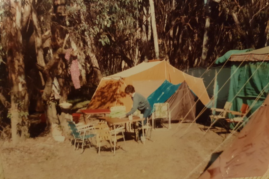 There were strategies required to put up a tent. Back in those days there were none of these fancy dome constructions that virtually put themselves up, with their fancy flies and you hammer them in. NOOO! We had to think about slopes and angles and pitching the tent so that if the tent touched the fly you had a hope in hell of getting out of there without total saturation.