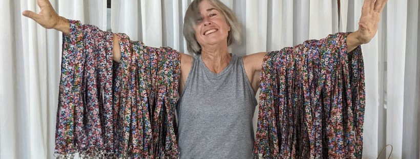 Our Gathering bags and lanyards have been hand made by members of our Gathering Committee. The bags are made from recycled materials and the lanyards are made from new material, but are hopefully something that can be reused, with no logo.