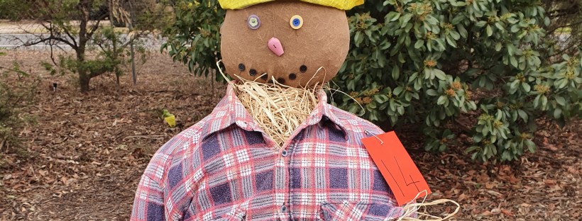 When I first knew about a scarecrow display I thought I would be able to ‘recycle’ my scary scarecrow that I made for the Forbes Riverside Community Gardens Open Day a few years ago. He was sitting in my backyard scaring unsuspecting visitors…..that was until my puppy came along.